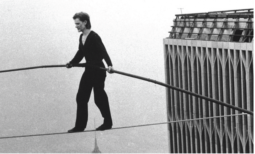 No caso do filme, Philippe Petit escolheu e trabalhou pelo risco que correria.
